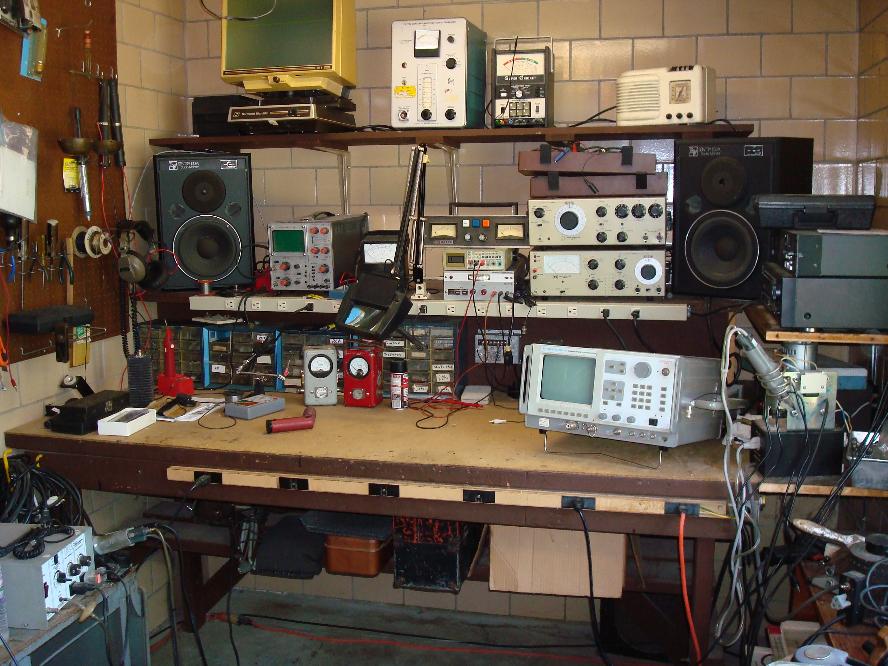My shop is in the old KWNO transmitter building in Winona, Minnesota. The station recently moved to a new diplexed site with KAGE in Winona. This building and tower were built in 1948 to house KWNO AM and KWNO FM. KWNO FM was ahead of it's time as there were very few FM radios in the 1950s. KWNO-FM left the air in the late 1950s. This tower was made by Truscon Steel and it is 400 feet tall. I'm still using this building but the tower came down in September 2011. This site is on a hill overlooking Winona which is about 500 feet below.